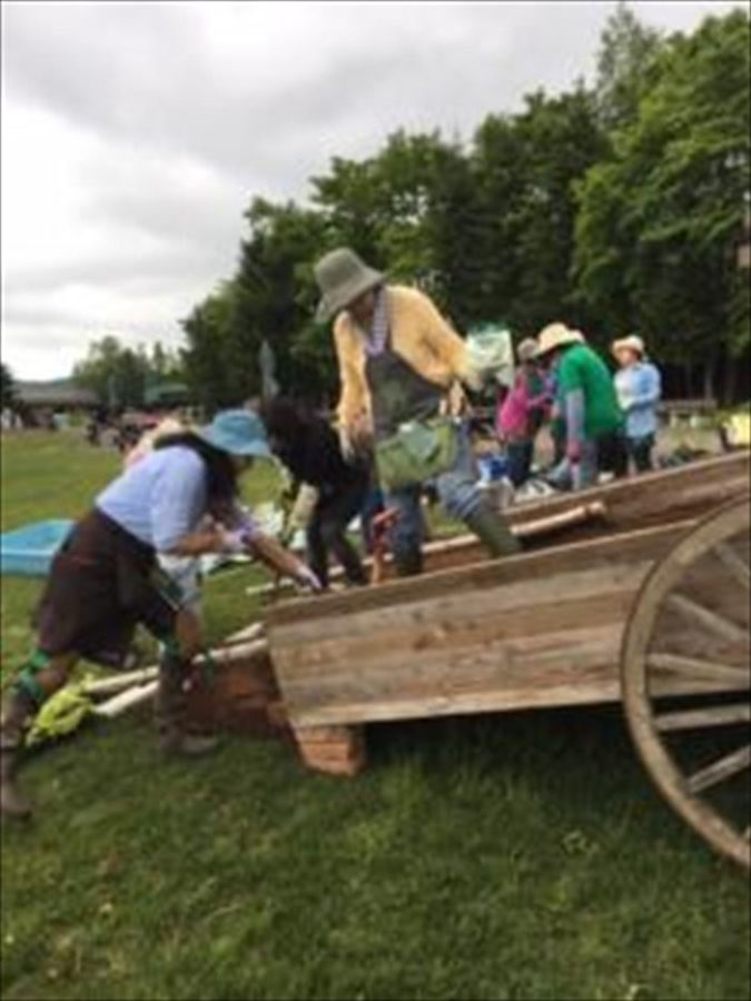 テーマガーデンを制作するにあたり、農業に繋がる荷車をオブジェとして中心に据え北海道に自生する植物を植栽の一部に使用しました。開拓に入った先人が残した土地の記憶や、昨年命名150年を迎え、これから新たな一歩を踏み出していこうという私たちの気持ちを合わせて表現できたらと思っています。