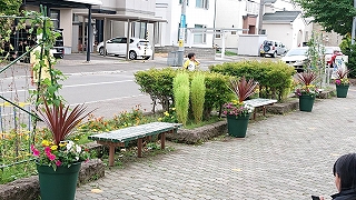 「花の寄せ植え」を見て少しでも癒され、明るい気持ちになってもらいたいとの願いを込めて計画しました。